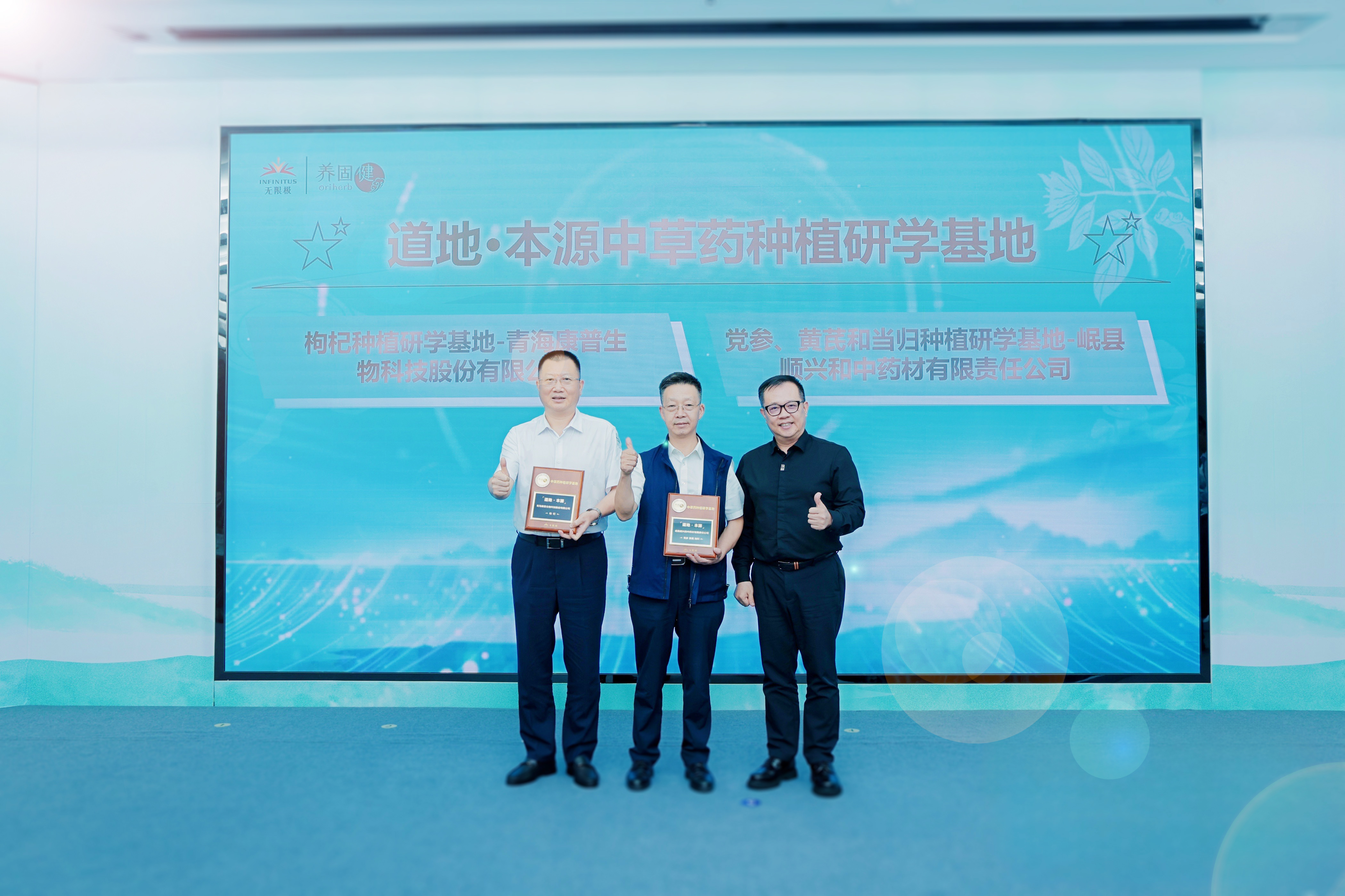 发布会尾声,胡贞忠与各基地代表共同为第二批道地·本源——养固健中草药种植研学基地授牌,这些基地通过透明化的种植过程展示,让品质信任可触可感。