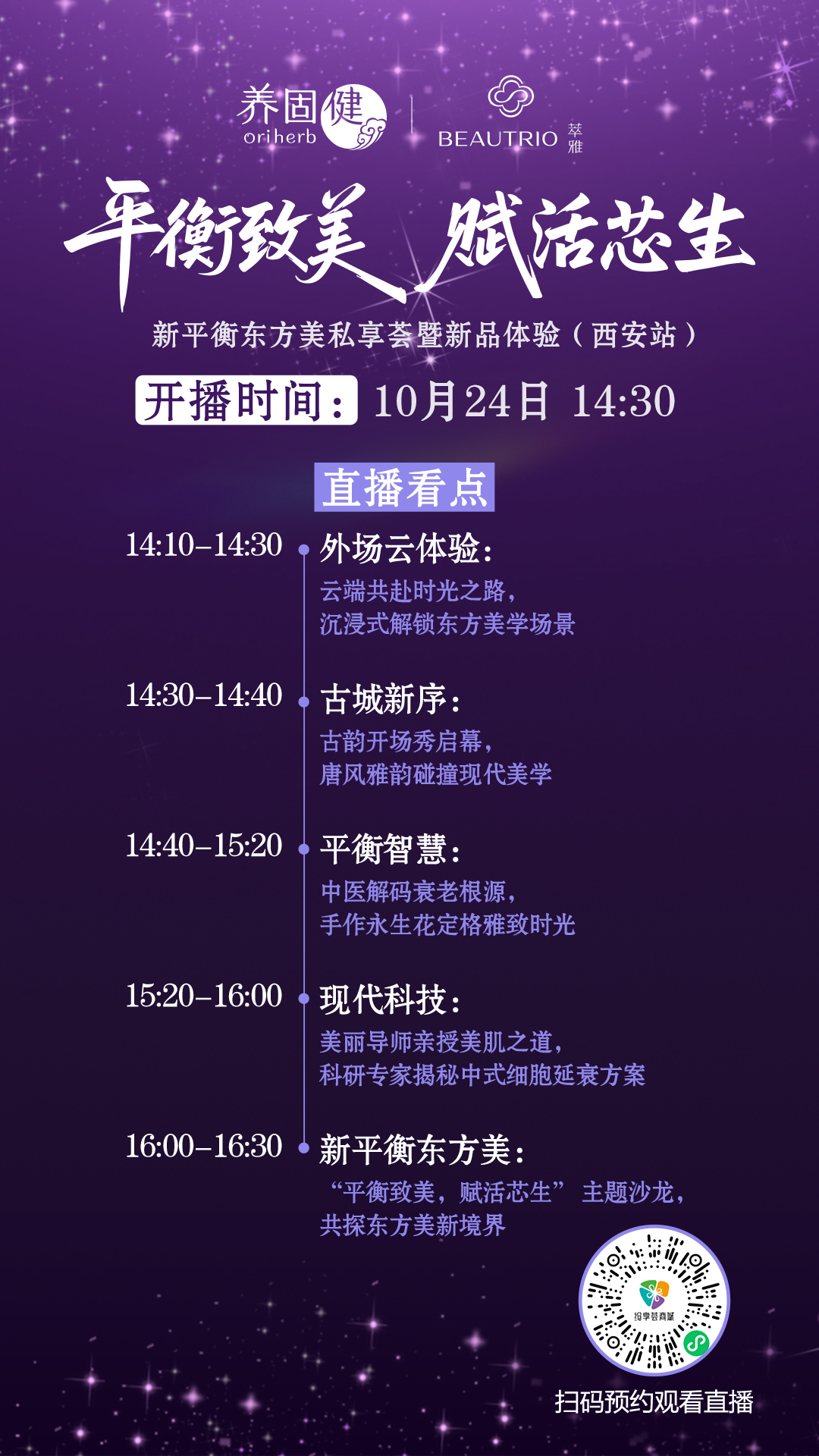 10月24日14:30,“平衡致美 赋活芯生”新平衡东方美私享荟暨新品体验西安站将开启线上直播,邀你“云穿越”千年古城,沉浸式感受不一样的东方之韵。