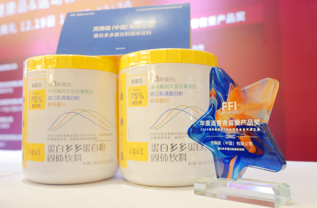 同期举办的2025营养健康品&运动营养食品年度之星颁奖典礼上,无限极旗下“乐姿乐言”品牌的明星产品“蛋白多多蛋白粉固体饮料”,斩获“年度消费者喜爱产品奖”,充分印证了这款产品的硬核产品力与良好用户口碑。